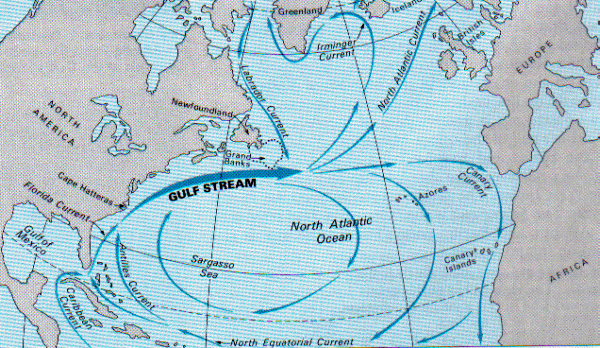 помогало попутное течение Гольфстрима. Поэтому вычислить